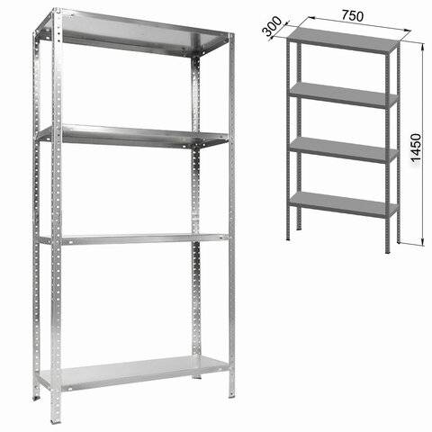 ПодробнееСтеллаж металлический ПРАКТИК "ES" облегченный (1450х750х300 мм), 4 полки, оцинкованная сталь, S24099033458